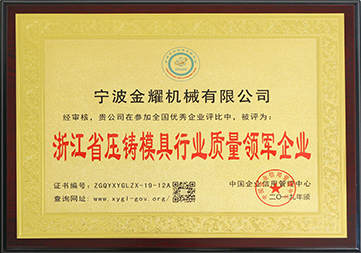 我司現已成為集設計、制造、生產鋁壓鑄模具和鋁壓鑄件為一體的中國鑄造模具重點骨干企業、全國自主創新影響企業、國家高新技術企業、中國模具工業協會企業信用評價AAA企業、浙江省壓鑄模具龍頭企業,公司先后通過ISO90012000質量管理體系認證;ISO14001-2004環境管理體系認證、職業健康安全管理等體系認證。
